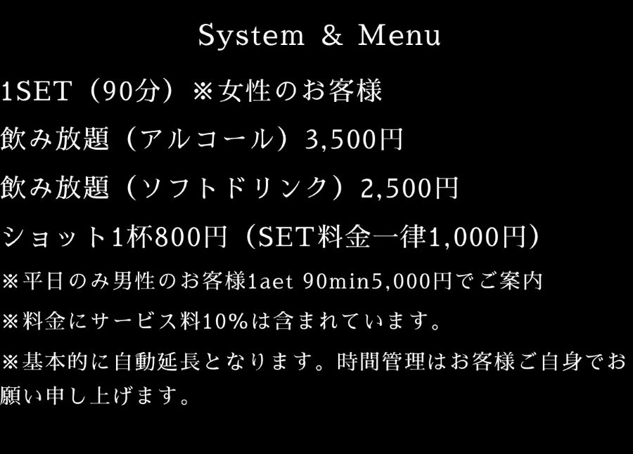 ソファー席に案内された後、とても綺麗なキャストさんが隣に座ってくれたのですが、お店の説明をして、飲み物をお願いする時に、美しい笑顔で言うんですよ。